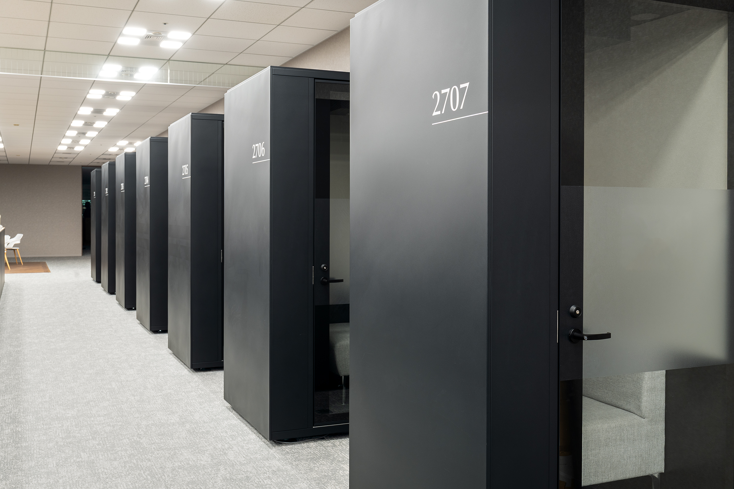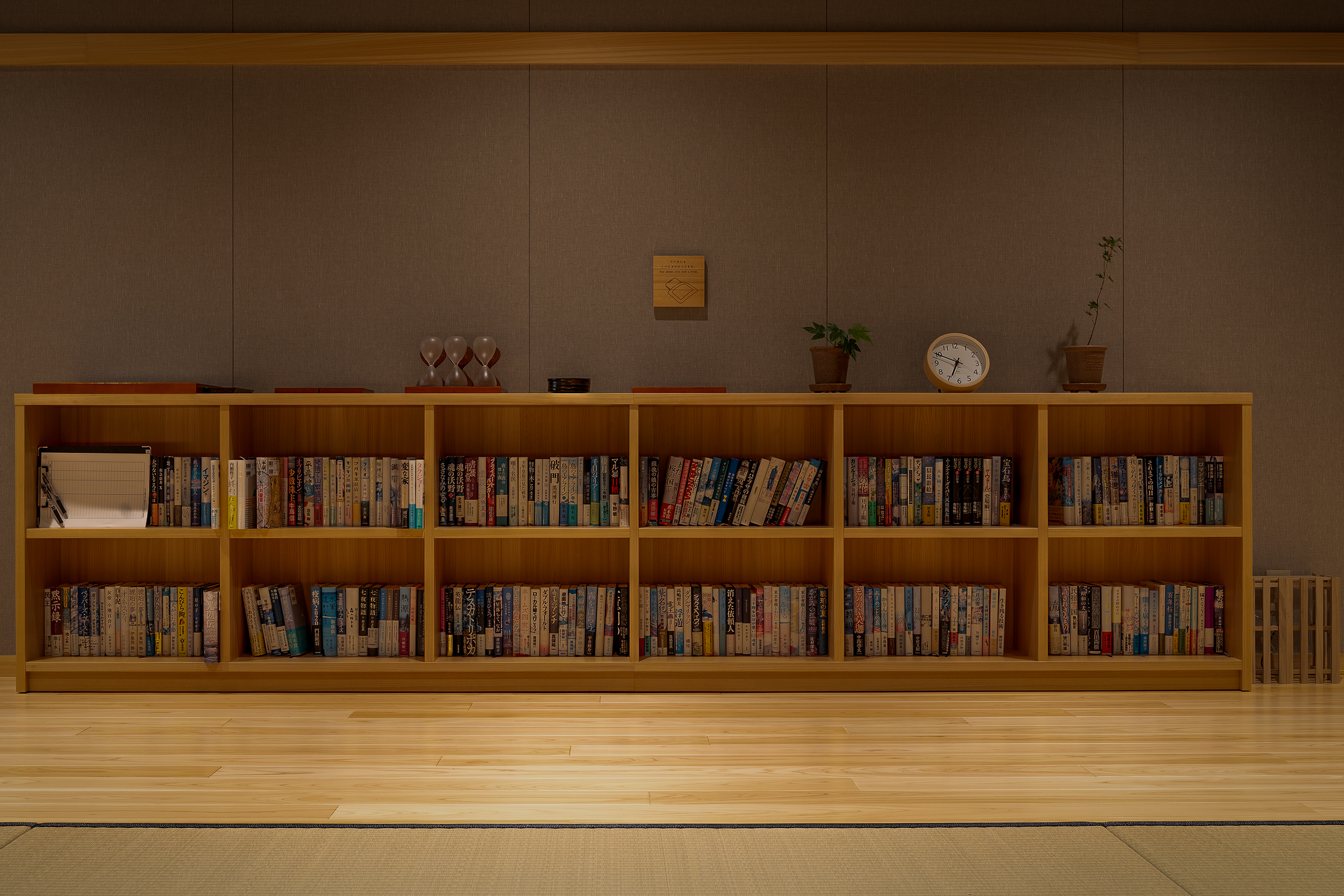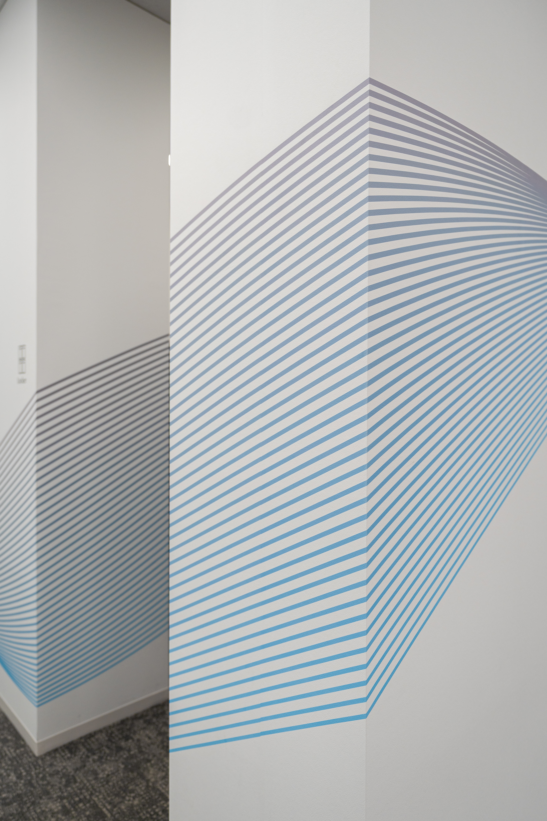 執務空間における視覚的なノイズとならないよう、背景に溶け込むシンプルな抽象グラフィックとして構成しました。