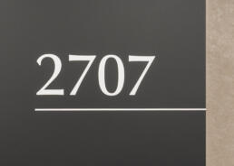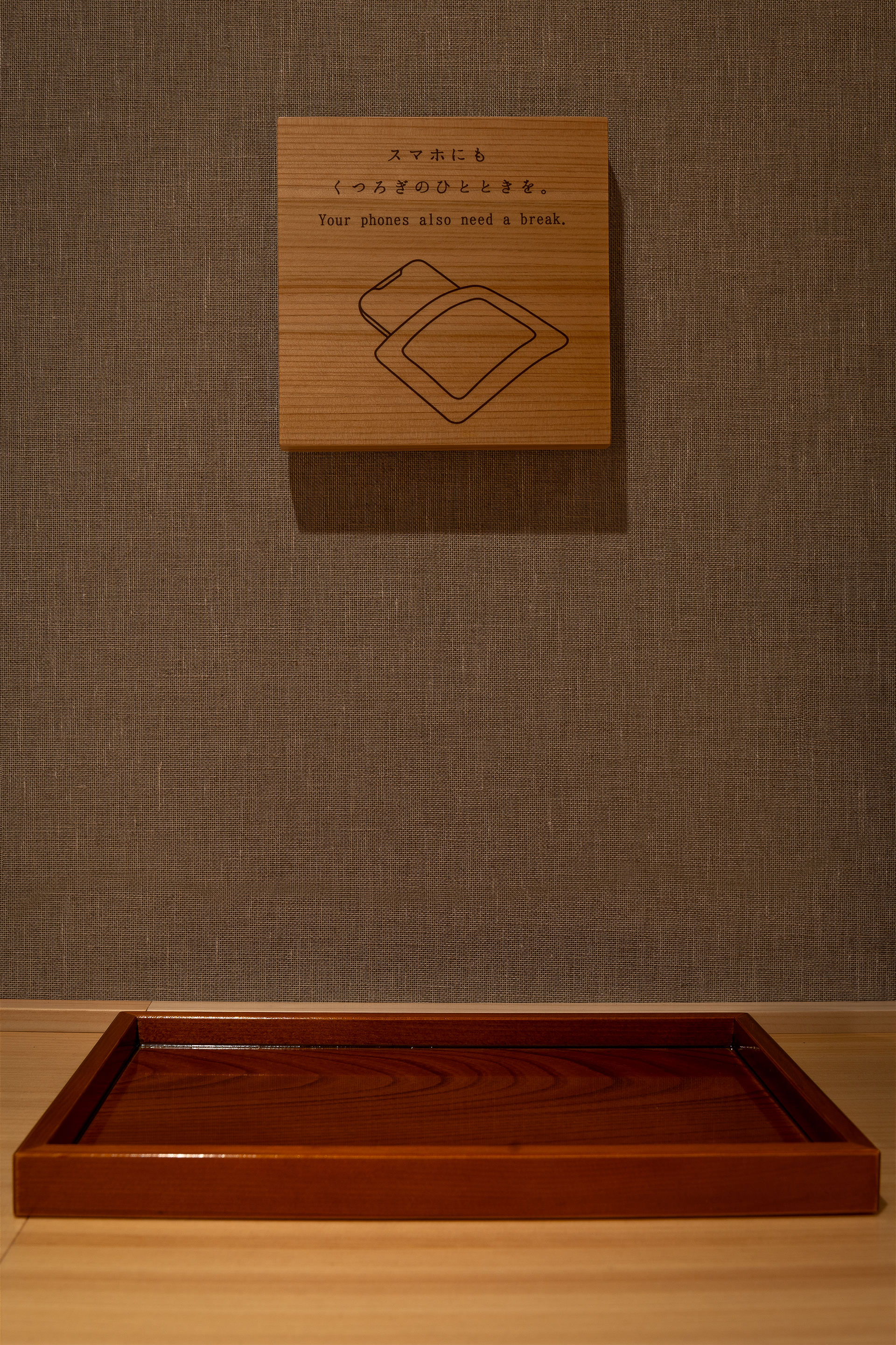 居場所を示す住所表示としての機能に加え、執務を“航海”に見立て、水面の揺らぎを想起させる配置でモールス信号を併記しています。