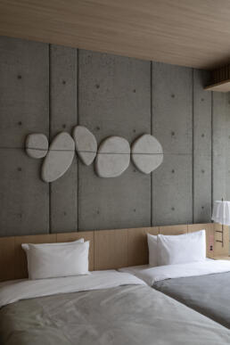 会議室2は「2角形(線)で構成されたグリッド」。風のように横に流れる線で構成されたグリッド模様のグラフィック。