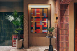 Inspired by Kyoto’s grid-like urban structure and the quiet beauty of Zen gardens.The artworks explore the balance between opposing elements —city and garden, artificial and natural, stillness and movement —through materiality and composition.Geometric layers recall the structure of the city,while textures and shadows create subtle changes over time.By stitching these elements together,the artworks add a quiet depth and rhythm that lingers in the memory of a stay in Kyoto.