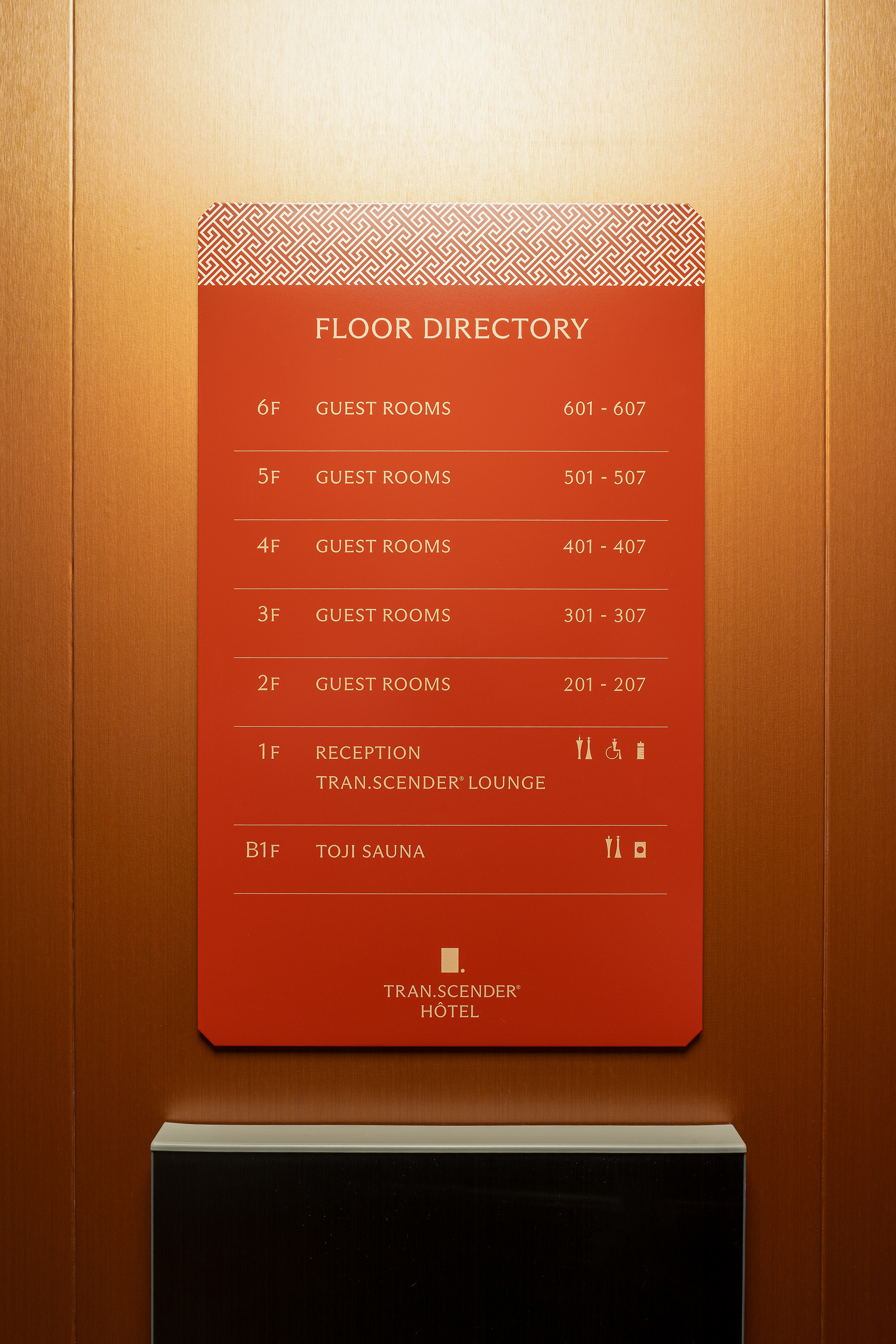 横浜中華街という、異文化が交差する場所に誕生した TRAN.SCENDER® HÔTEL Yokohama のロゴおよび館内サインを手がけました。ロゴデザインは、ホテルという器を想起させる「矩形」をベースに構成。ネーミングに刻まれた特徴的な「ピリオド」を、枠の外へと抜け出す存在として象徴的に扱いました。枠と、そこから飛び出すピリオド——この関係性は、日常から非日常へ、あるいは既存の概念から次なる次元へと踏み出す「越境」の意志を表現しています。館内サインは中華街の文脈から要素を抽出し、空間に自然と溶け込むかたちで再構築。文化と思想のレイヤーが交差する、静かな緊張感のある空間を目指しました。